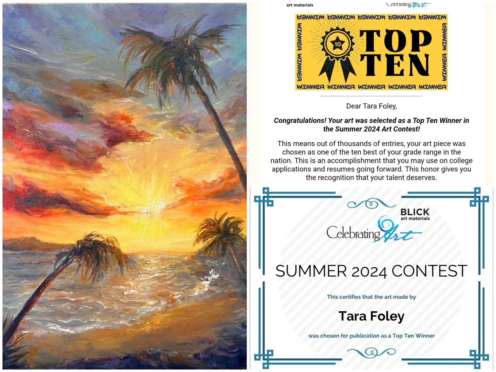 Her artwork was selected as a TOP TEN Winner in National Summer 2024 Art Contest;